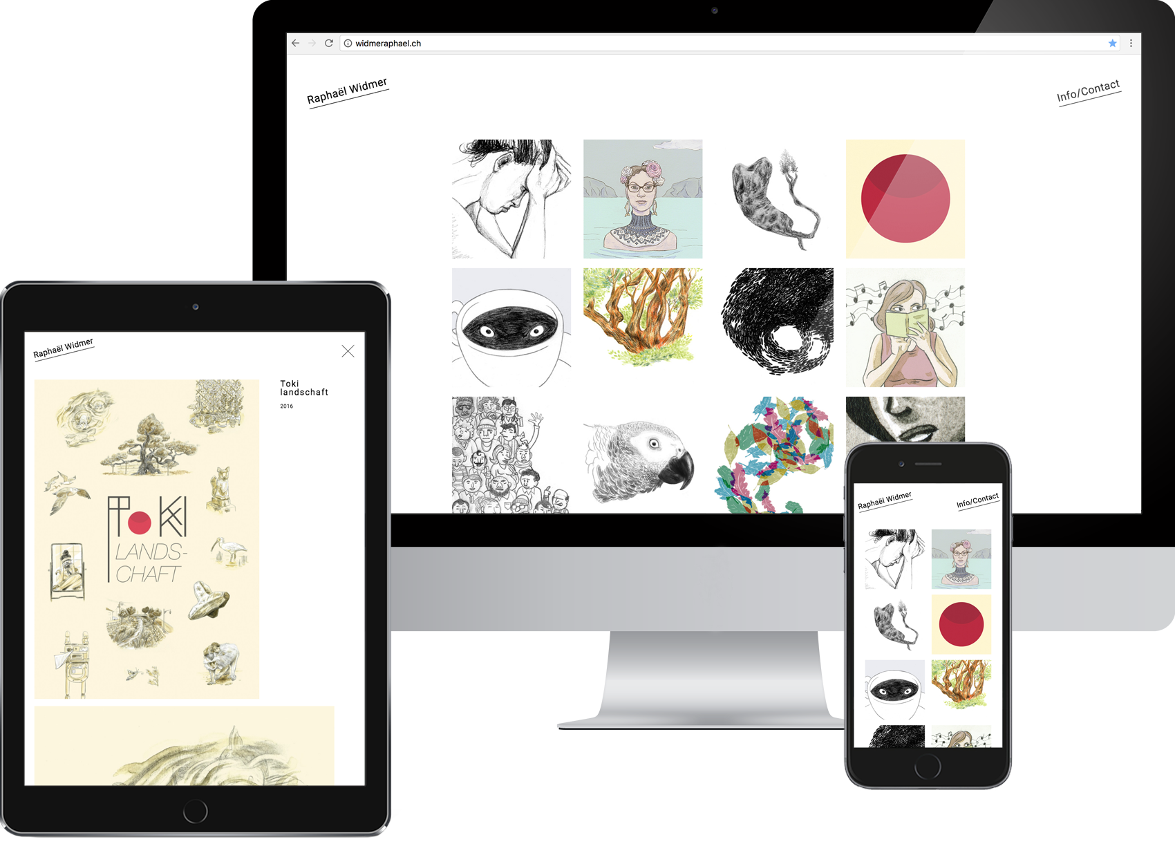 Réalisation du web-design et de la programmation pour le site du dessinateur, illustrateur et bédéiste Raphaël Widmer